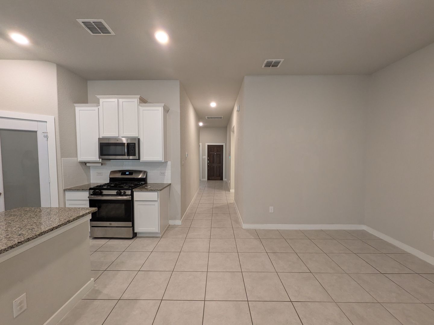 This spacious one-story home offers 3 bedrooms, 2 bathrooms, and a flex room with a layout designed for modern living. Step into the open-concept main area featuring ceramic tile, a large living area, and a stylish kitchen with granite countertops, tile backsplash, gas cooking, and stainless steel appliances. Retreat to the oversized primary suite with bay windows, a walk-in closet, and a spa-like en-suite bathroom with dual vanities a soaking garden tub and separate shower. Additional highlights include, a fully fenced backyard with a covered patio, and a two and a half-car garage for extra storage. Ideally located with quick access to Randolph Air Force Base, major highways and shopping.
