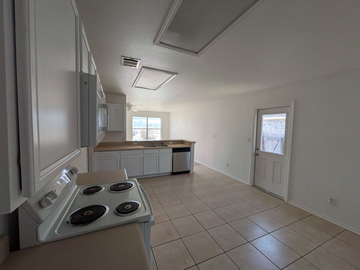 This duplex offers a great 3 bedroom 2 bath floorplan available for immediate move in. Fresh interior paint and all new vinyl flooring in living room and all bedrooms (no carpet). Ceramic tile in kitchen and bathrooms. Spacious eat-in kitchen overlooking living area. Bedrooms feature walk in closets. Utility room with full size washer dryer connections. Private fenced backyard.